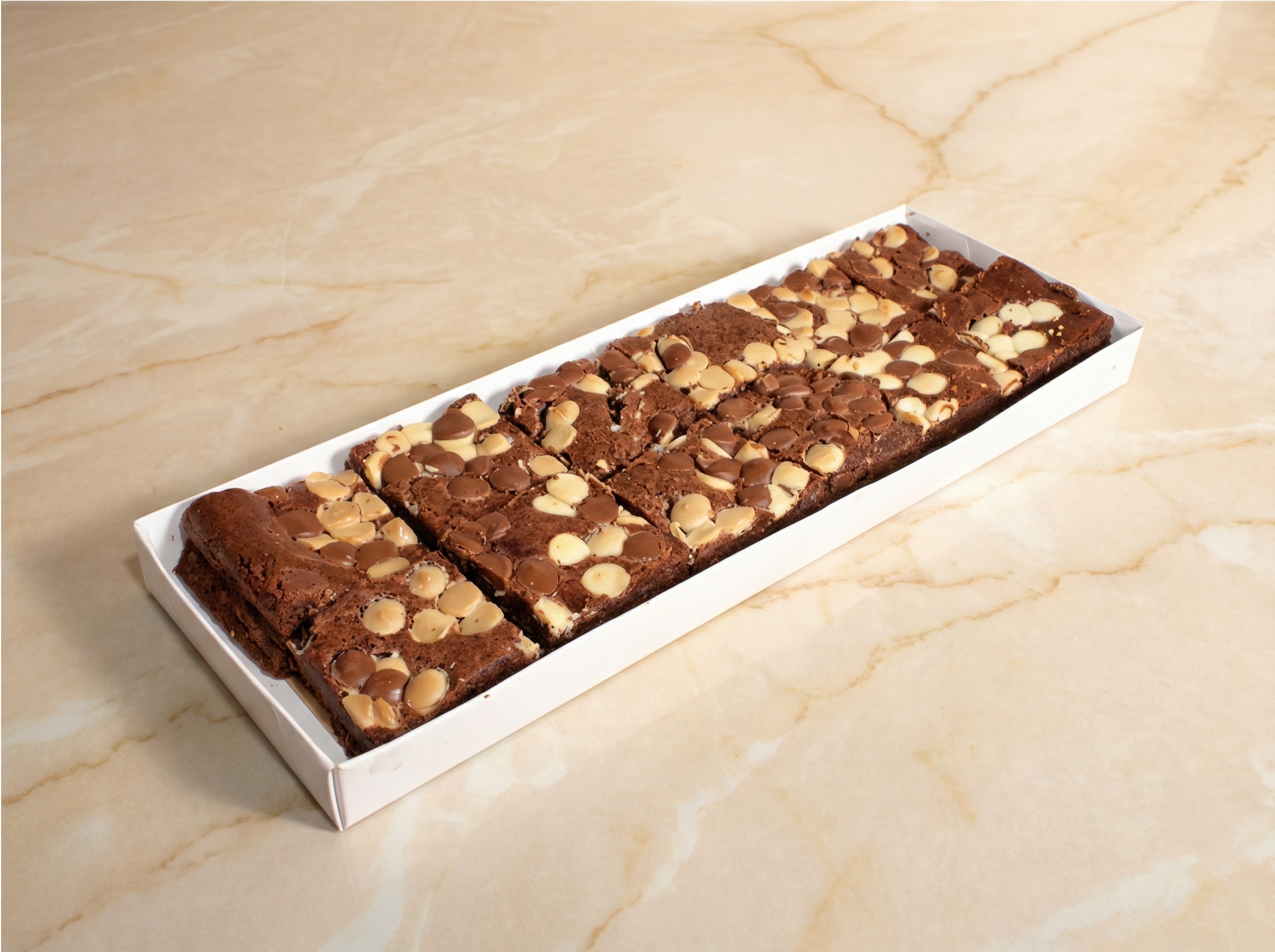 12 י'ח בראוניז טריפל שוקולד: שוקולד לבן, שוקולד חלב, שוקולד מריר